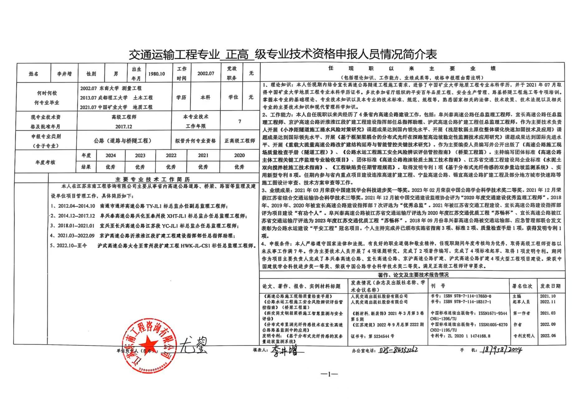 根據《江蘇省交通運輸工程專業技術資格條件(試行)》規定,2025年度有李井增同志擬申報江蘇省交通運輸廳交通運輸工程公路(道路與橋隧工程)專業正高級工程師。為體現公開、公平、公正原則,廣泛聽取群眾意見,現將擬申報人員信息予以公示。
