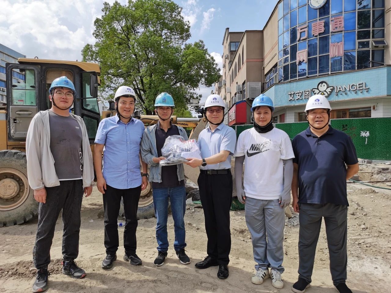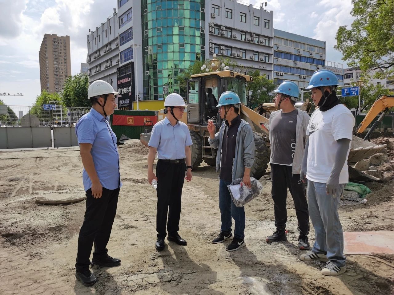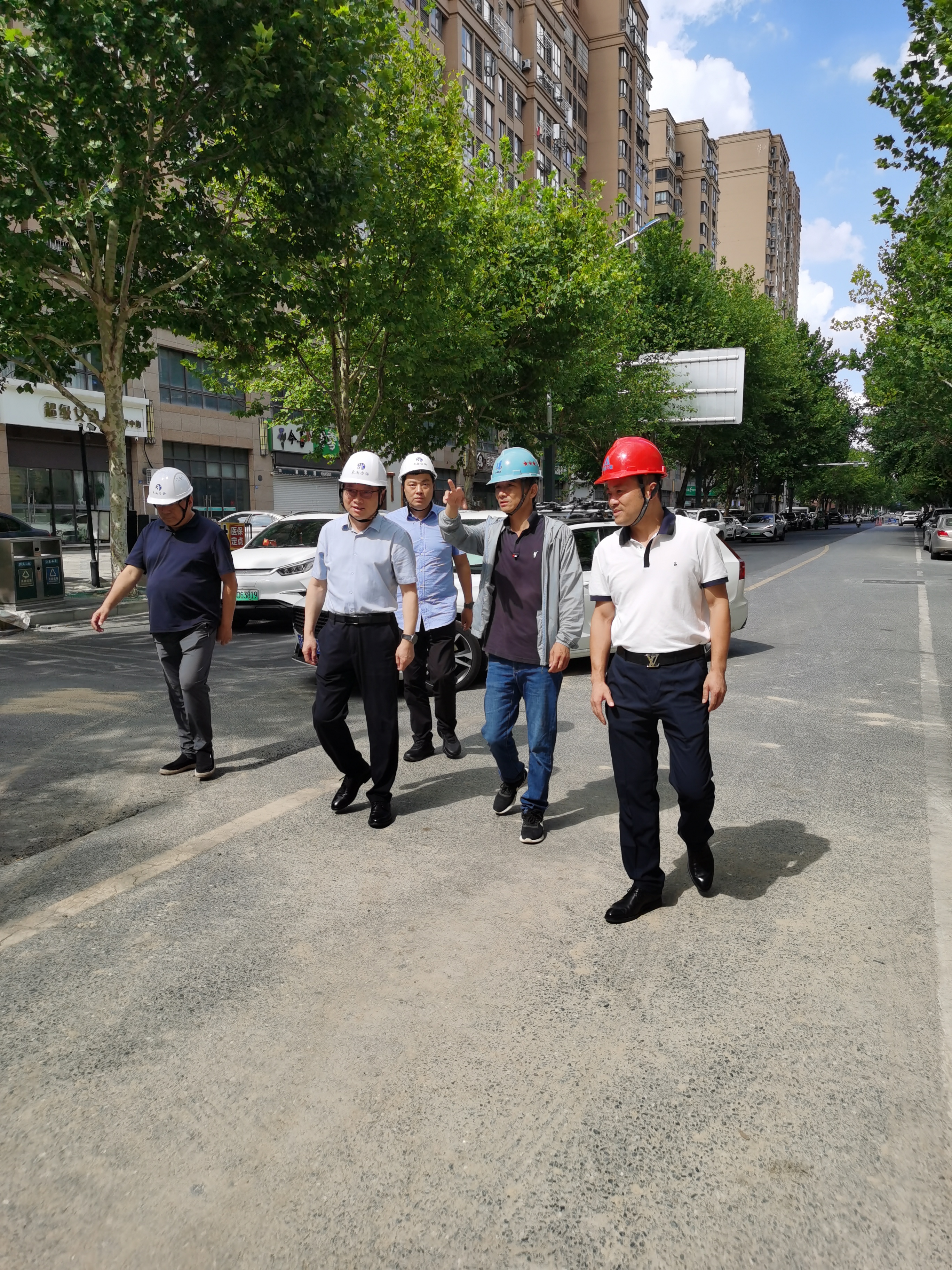 2025年7月22日15時許,如皋市氣溫突破37℃。高溫炙烤,難阻工程建設(shè)步伐。我公司承監(jiān)的如皋市老舊排水管網(wǎng)改造監(jiān)理項(xiàng)目現(xiàn)場,工作人員正揮汗如雨,緊張有序的忙碌著。此時,東南大學(xué)資產(chǎn)經(jīng)營有限公司董事長邱衛(wèi)東在公司總經(jīng)理尤鋆、副總經(jīng)理范越宇陪同下來到施工現(xiàn)場,慰問高溫下堅守監(jiān)理崗位的一線監(jiān)理員工,送去防暑降溫慰問品,并檢查現(xiàn)場高溫安全生產(chǎn)專項(xiàng)工作落實(shí)情況。