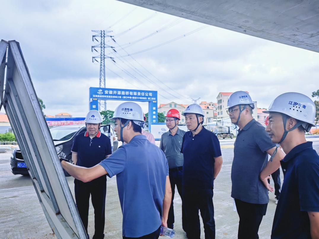 尤鋆一行頂著烈日,實地查看了廈門沈海高速杏林互通及接線項目的田李溪大橋、主線高架橋以及寧上高速J1合同段東吾洋特大橋等重點施工部位,詳細詢問了工程實施及安全生產情況,特別叮囑團隊要做好高溫和臺風季節的工作安排,強調要科學調整作息。